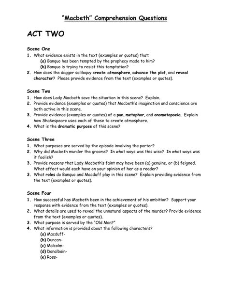 Read Macbeth Act 1 Comprehension Questions And Answers Kindle Editon