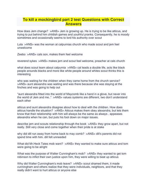 Read Online Questions For To Kill A Mockingbird Answers Epub